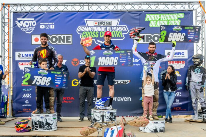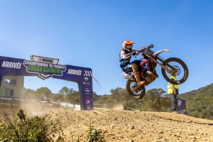 De la chaleur, quelques passages boueux et de belles difficultés, c’était le menu pour les guerriers de l’après-midi. Larrieu signe un magnifique Holeshot 24MX, la rapidité de sa Rieju pour démarrer lui a ouvert un boulevard pour faire entendre à tous les septiques que le deux temps n’est pas mort. Léo Le Quéré quand à lui subira les affres de la mécaniques dès le premier tour avec un pneu déjanté, il réussira à rejoindre le parc d’assistance et à continuer la course pour malheureusement ne pas passer la ligne d’arrivée par la suite. Dans la série, déboires mécaniques, Christophe Charlier après avoir pris la tète pendant plus des trois quarts de la course, créé une belle avance de plus d’une minute, son sélecteur de vitesse décidera d’arrêter de fonctionner suite à un accrochage, lui faisant perdre toute son avance pour finalement terminer 20 secondes derriere Blanjoue. Loic Larrieu après le holeshot, a été le solide troisième de cette course, il a prouvé qu’être équipé d’un moteur 2 temps était loin d’être un désavantage en Cross Country. On remarquera aussi l’entrée réussi en catégorie élite d’Antonin Mille, le champion Junior a occupé des places d’honneur toute la course, montrant un gros rythme et une très belle technique sur ce tracé Corse. En Junior justement, Mateo Arrieta a mené une belle bataille avec Diego Foucher, comit peu d’erreurs et effectué des ravitaillements éclairs, qui lui ouvre les portes de la victoire sur cette ouverture. Axel Destarac complète le podium.